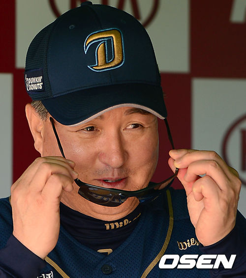 25일 오후 광주 무등야구장에서 열린 '2013 한국야쿠르트 세븐 프로야구' KIA 타이거즈와 NC 다이노스의 경기, 경기에 앞서 NC 김경문 감독이 취재진과 이야기를 나누며 선글라스를 벗고 있다.