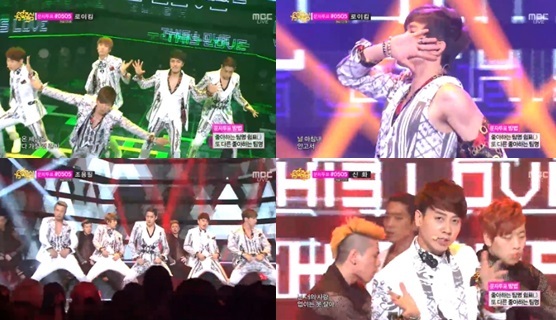신화는 25일 방송된 MBC 가요프로그램 '음악중심'에 출연해 11번째 정규앨범의 타이틀 곡 '디스 러브(This Love)'를 열창했다. 이들은 진지한 표정과 여유가 느껴지는 제스처로 무대를 종횡무진했으며 흰색 수트로 매려을 더했다.