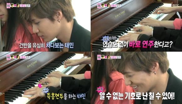 태민은 이에 앞서 악보 없이 수준급의 피아노 실력을 과시해 '우리 결혼했어요4' 진행자 박미선, 김정민, 이지혜, 데니안을 놀라게 했다.