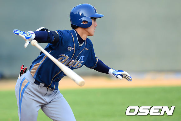 25일 오후 광주 무등야구장에서 열린 '2013 한국야쿠르트 세븐 프로야구' KIA 타이거즈와 NC 다이노스의 경기, 4회초 무사 만루에서 NC 노진혁이 적시타를 치고 있다.