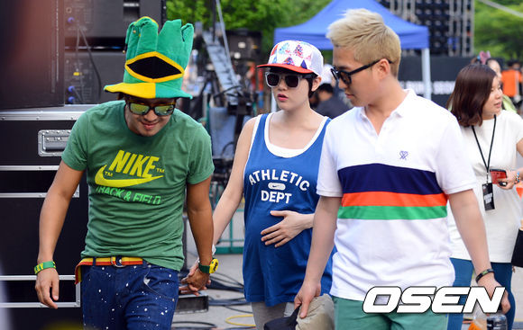 진행을 맡은 하하와 응원온 별이 행사장을 빠져나가고 있다.
