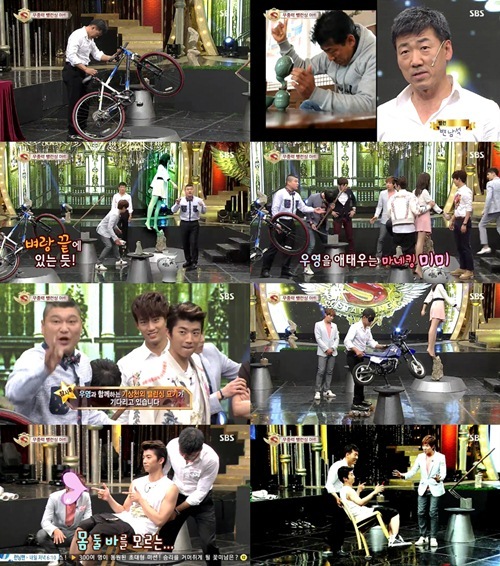 또 변남석 씨는 안대로 눈을 가린 뒤 오토바이의 중심을 잡는 퍼포먼스를 보여줘 MC들을 놀라게 했다. 뿐만 아니라 그는 커다란 3인용 소파를 작은 주춧돌 위에 세우기도 했다.