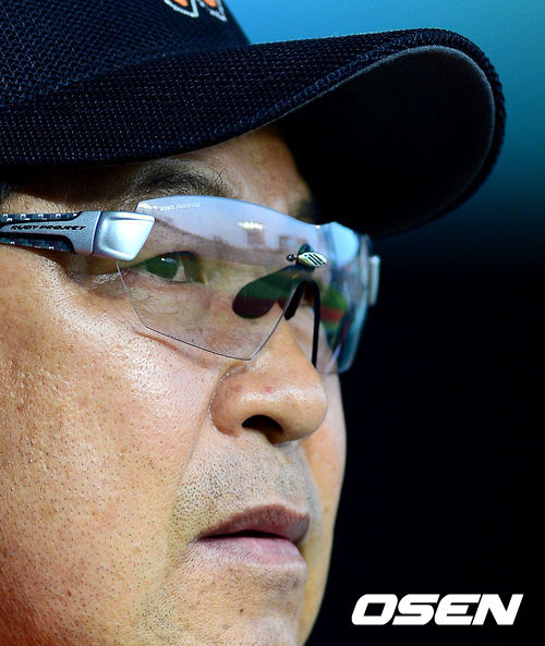 25일 오후 서울 잠실야구장에서 열린 '2013 한국야쿠르트 세븐 프로야구' LG 트윈스와 SK 와이번스의 경기, 8회말 SK 이만수 감독이 더그아웃에서 진지한 표정으로 경기를 지켜보고 있다.