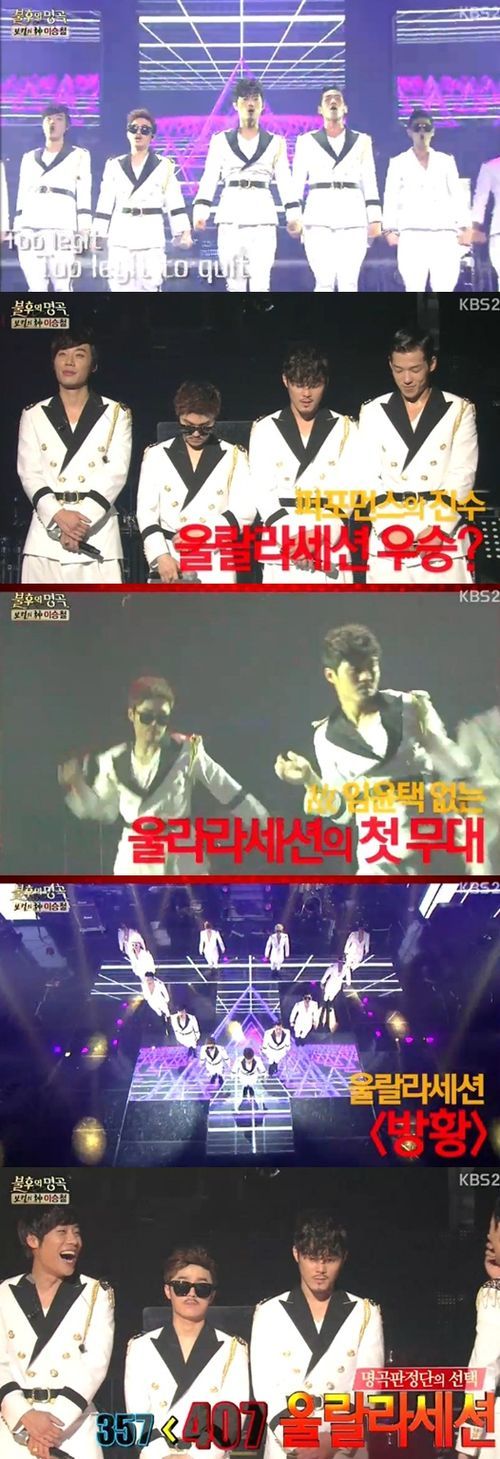 이날 울랄라세션은 먼저 세상을 떠난 故임윤택에 대해 “우리는 항상 5인조 그룹이다”라며 그가 마지막으로 준비했던 이승철의 곡 ‘방황’을 무대에 올렸다. 이들은 “윤택 형이 무대 위에 있다는 생각으로 하겠다”고 각오를 다지며 무대 위에 섰다.