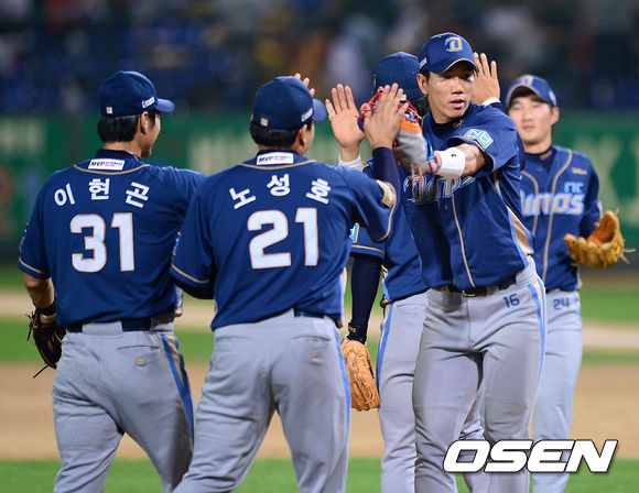 경기 종료 후 NC 선수들이 승리의 기쁨을 나누고 있다. /sunday@osen.co.kr