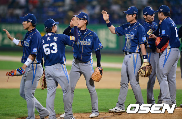 경기 종료 후 NC 선수들이 승리의 기쁨을 나누고 있다. /sunday@osen.co.kr