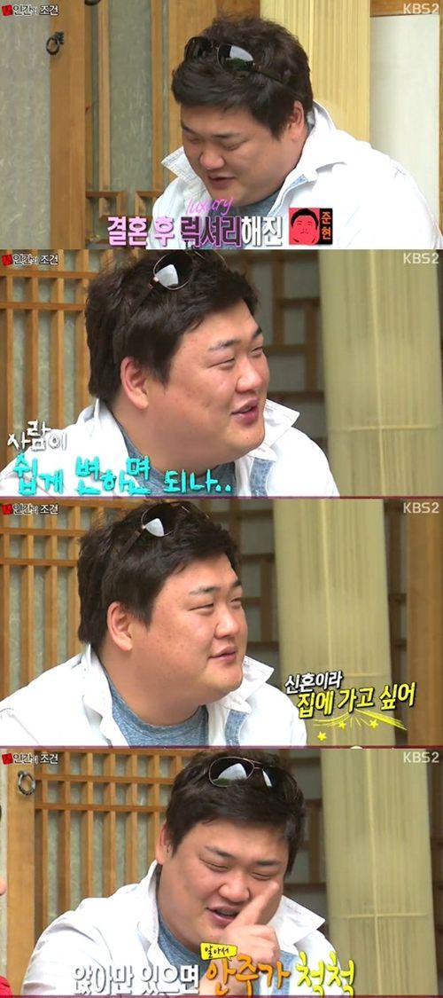 이에 김준현은 “결혼을 하니 뭔지 모를 안정감이 있다”며 “예전에는 불안하게 술을 먹었는데 이제는 집에서 안정감 있게 술을 마신다”고 말했다.