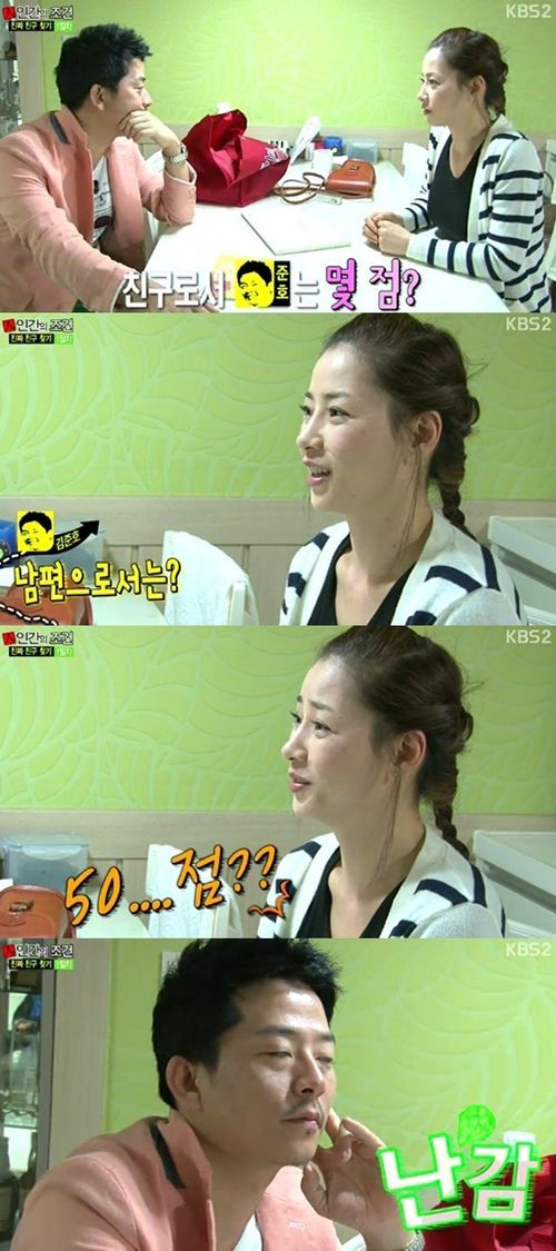 또 김준호의 아내는 김준호가 점수를 묻는 질문에 “친구로서 100점이다. 조언을 잘해준다”며 “남편으로서는 50점이다”라고 말해 김준호의 마음을 상하게 했다.