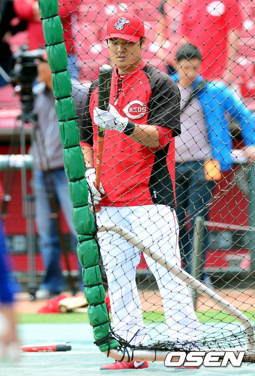 26일 새벽(이하 한국시간) 미국 오하이오주 신시내티 그레이트 아메리칸 볼파크에서 열리는 신시내티 레즈와 시카고 컵스의 경기 시작 전 추신수가 훈련을 하고 있다.
