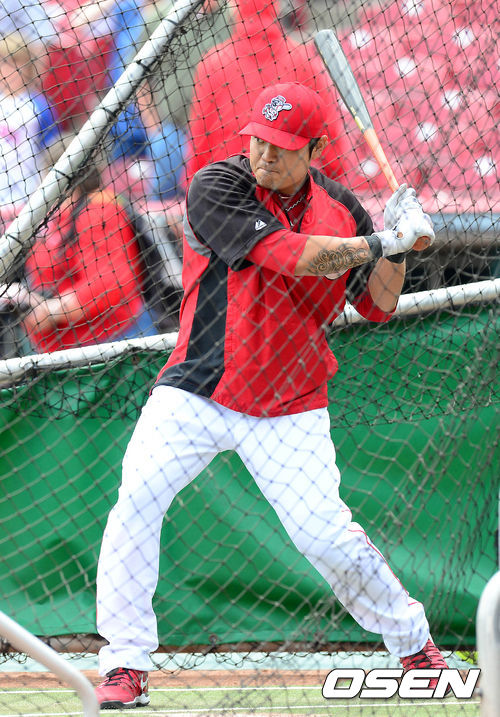 26일 새벽(이하 한국시간) 미국 오하이오주 신시내티 그레이트 아메리칸 볼파크에서 열리는 신시내티 레즈와 시카고 컵스의 경기 시작 전 추신수가 타격 훈련을 하고 있다.
