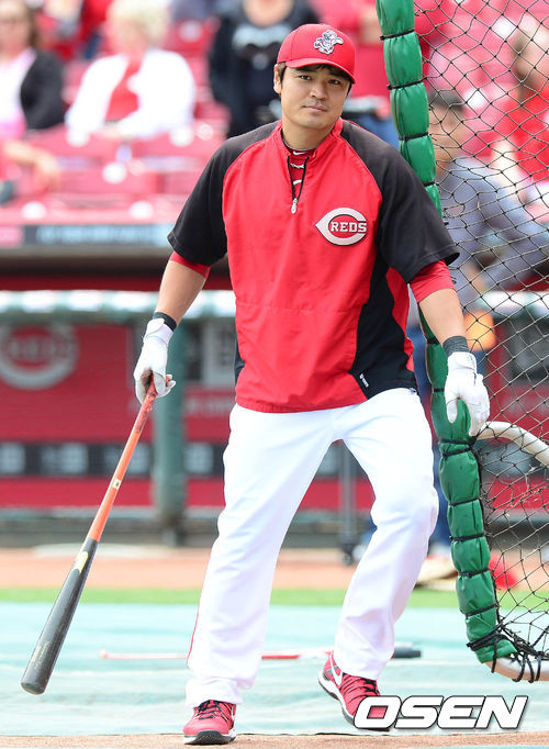 26일 새벽(이하 한국시간) 미국 오하이오주 신시내티 그레이트 아메리칸 볼파크에서 열리는 신시내티 레즈와 시카고 컵스의 경기 시작 전 추신수가 타격 훈련을 하고 있다.