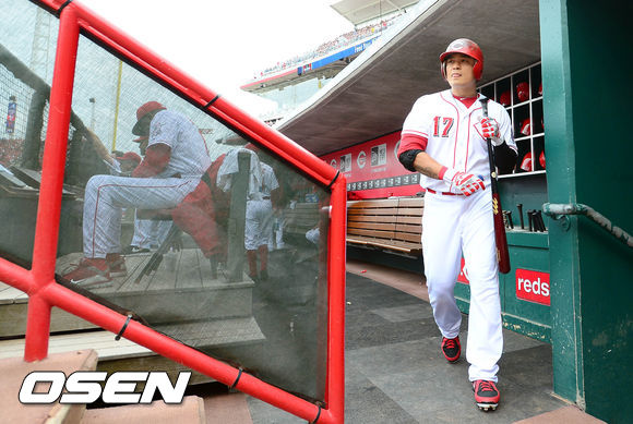 26일 새벽(이하 한국시간) 미국 오하이오주 신시내티 그레이트 아메리칸 볼파크에서 열린 신시내티 레즈와 시카고 컵스의 경기 1회말 선두타자 추신수가 타석으로 향하고 있다.