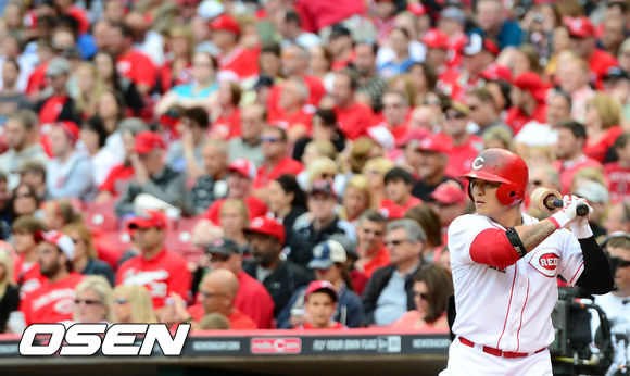 26일 새벽(이하 한국시간) 미국 오하이오주 신시내티 그레이트 아메리칸 볼파크에서 열린 신시내티 레즈와 시카고 컵스의 경기 5회말 1사 추신수가 타석으로 나가기 전 스윙을 하고 있다.