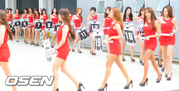 결승전에 앞서 그리드 걸이 입장하고 있다