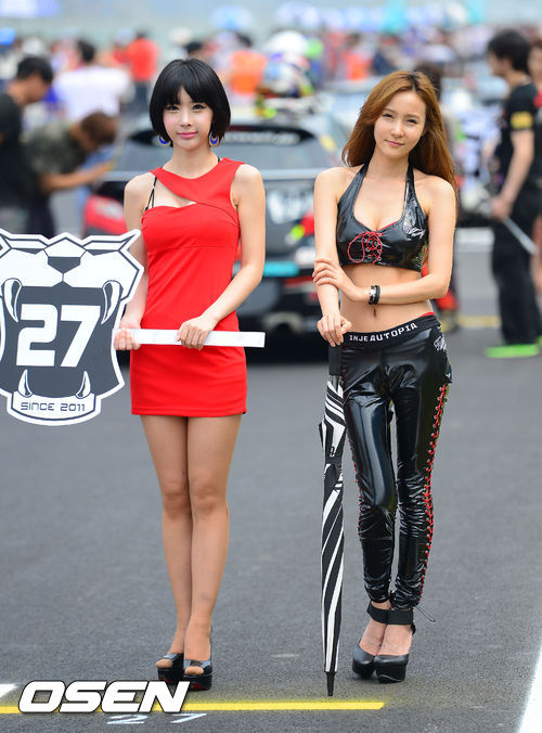 결승전에 앞서 그리드 걸과 레이싱 모델이 나란히 서 있다