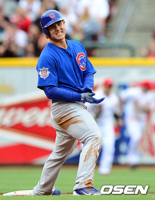 26일 새벽(이하 한국시간) 미국 오하이오주 신시내티 그레이트 아메리칸 볼파크에서 열린 신시내티 레즈와 시카고 컵스의 경기 5회초 2사 추신수의 보살에 리조가 2루에서 아웃된 후 아쉬운 미소를 짓고 있다.