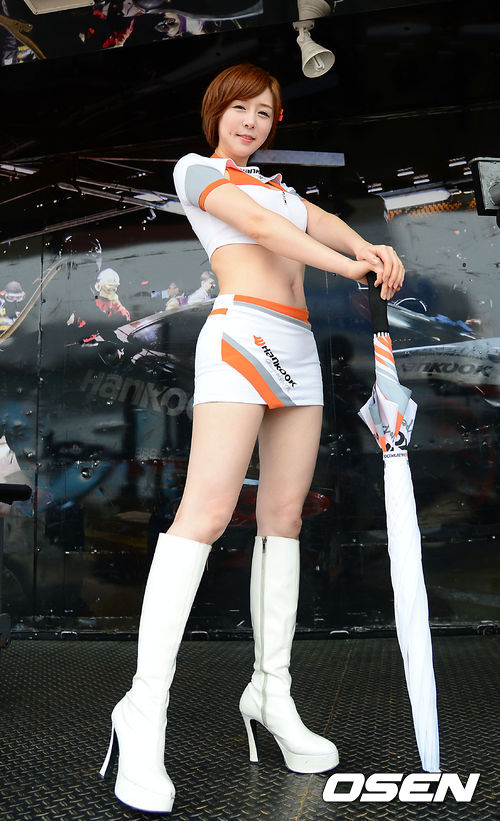 26일 전라남도 영암 코리아인터내셔널서킷에서 진행된 '2013 코리아 스피드 페스티벌(이하 KSF)' 2라운드에서 한국타이어 소속 레이싱걸 정아라가 포즈를 취하고 있다.
