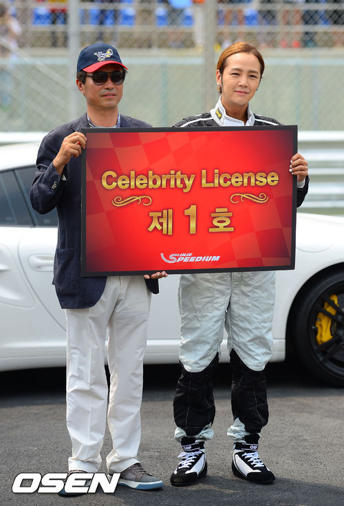 장근석이 셀럽 라이센스 1호를 받은 뒤 포즈를 취하고 있다