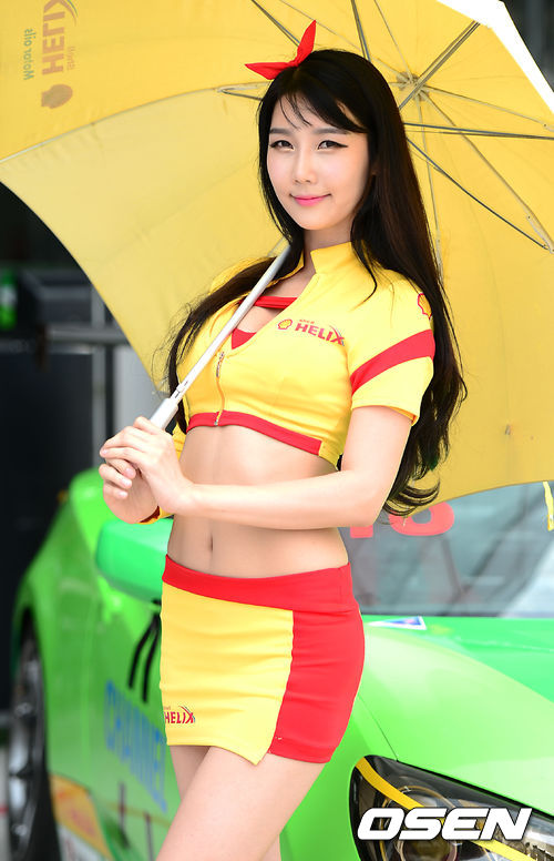 26일 전라남도 영암 코리아인터내셔널서킷에서 진행된 '2013 코리아 스피드 페스티벌(이하 KSF)' 2라운드에서 Shell 소속 레이싱걸 고정아가 포즈를 취하고 있다.