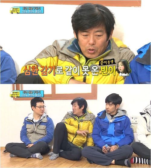 성동일은 26일 방송된 MBC 예능프로그램 ‘일밤-아빠 어디가’에서 아이들이 심부름을 떠난 후 아빠들과 대화를 나누던 중 “준이는 동생 빈이가 아파서 오지 못한 것을 천운으로 여기고 있다”고 이야기를 해 웃음을 자아냈다.