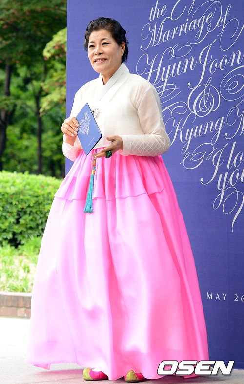 결혼식에 참석한 박술녀가 포토타임을 갖고 있다.