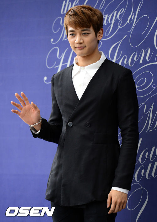 결혼식에 참석한 샤이니 멤버 민호가 포토타임을 갖고 있다.
