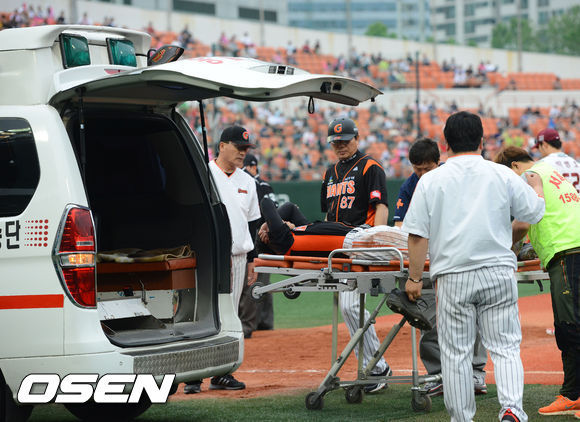 롯데 관계자는 "왼쪽 발목과 무릎에 통증을 호소해 목동 이대병원으로 이송됐다"라고 밝혔다. 정확한 부상 정도는 아직 밝혀지지 않았다.