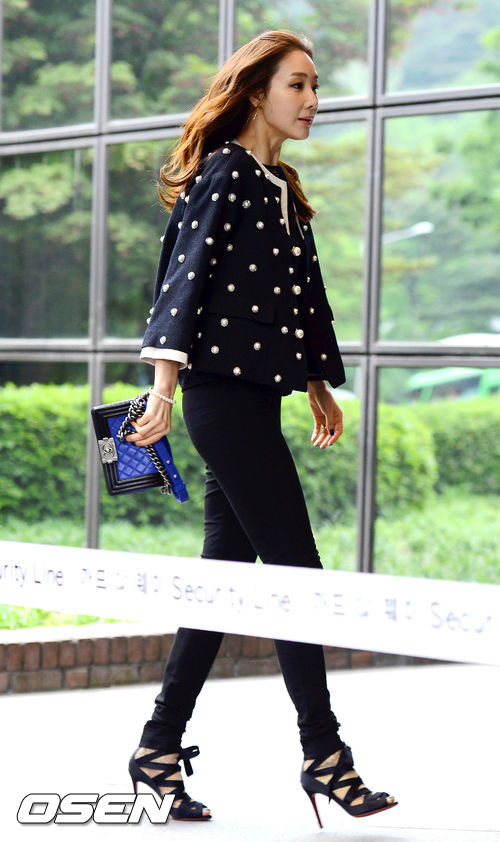 결혼식에 참석한 최지우가 포토월을 피해 결혼식장으로 입장하고 있다.