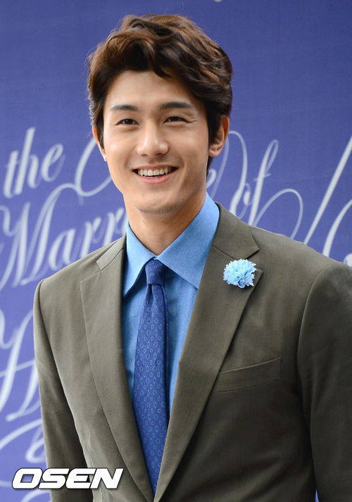 결혼식에 참석한 이기우가 포토타임을 갖고 있다.