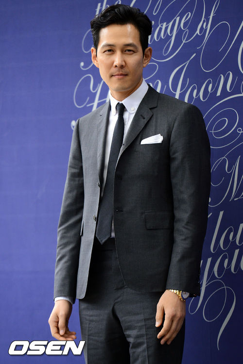 결혼식에 참석한 이정재가 포토타임을 갖고 있다.