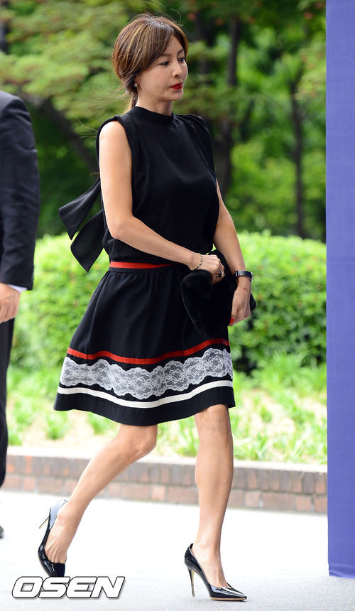 결혼식에 참석한 황신혜가 포토월로 입장하고 있다.