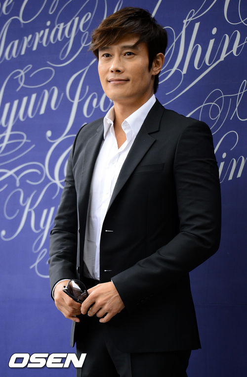 결혼식에 참석한 이병헌이 포토타임을 갖고 있다.