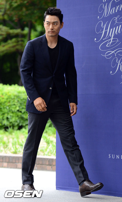 결혼식에 참석한 주진모가 포토월로 입장하고 있다.