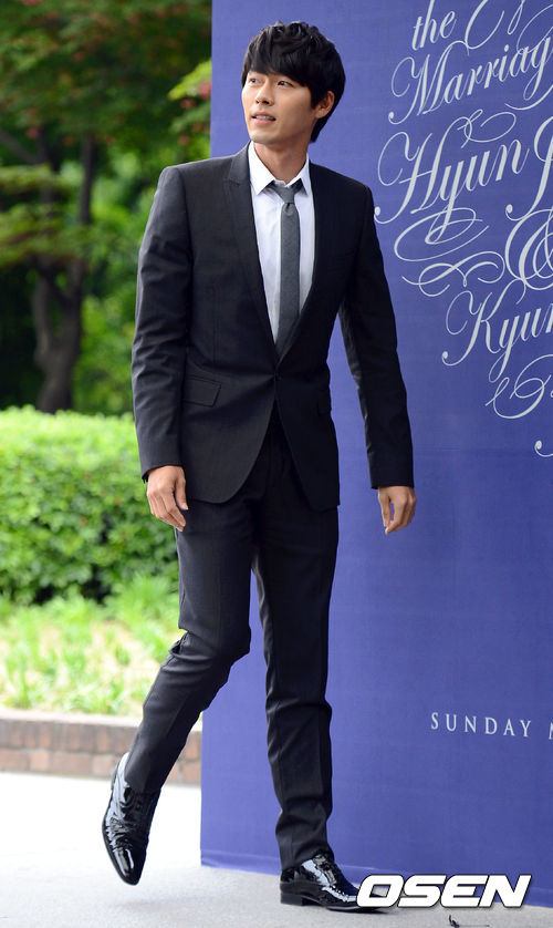 결혼식에 참석한 현빈이 포토월로 입장하고 있다.
