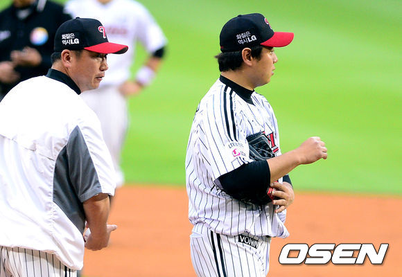 26일 오후 서울 잠실야구장에서 열린 '2013 한국야쿠르트 세븐 프로야구' LG 트윈스와 SK 와이번스의 경기, 5회초 1사 만루에서 LG 선발 류제국이 마운드를 내려오고 있다.