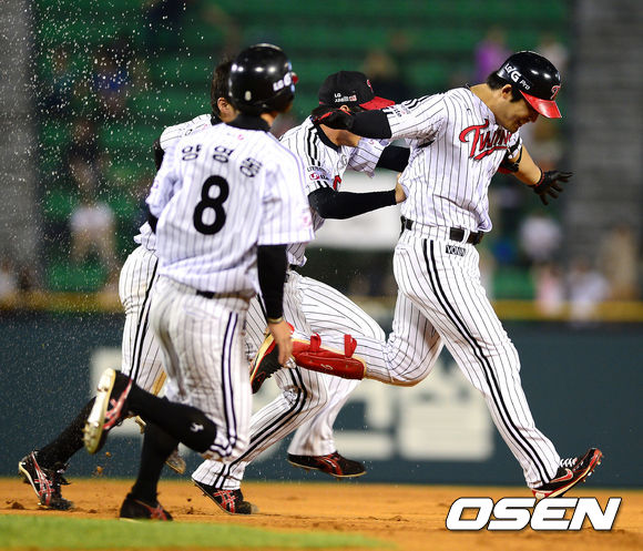 9회말 무사 1루에서 LG 정의윤이 끝내기 안타를 날리고 기뻐학 있다. /jpnews@osen.co.kr
