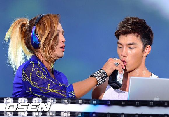 26일 오후 강원 인제군 북리에 위치한 인제 스피디움 서킷에서 열린 '2013 슈퍼다이큐 인 코리아(2013 SUPER TAIKYU IN KOREA)' 애프터 파티 공연에서 장근석이 빅브라더에게 술을 권하고 있다.