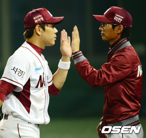 경기를 마친 후 넥센 강정호가 염경엽 감독과 하이파이브를 하고 있다./ rumi@osen.co.kr