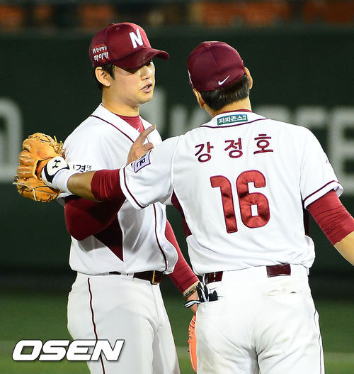 경기를 마친 후 넥센 손승락과 강정호가 승리의 기쁨을 나누고 있다../ rumi@osen.co.kr