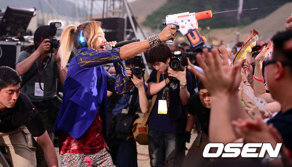 26일 오후 강원 인제군 북리에 위치한 인제 스피디움 서킷에서 열린 '2013 슈퍼다이큐 인 코리아(2013 SUPER TAIKYU IN KOREA)' 애프터 파티 공연에서 장근석이 팬들에게 물총을 쏘고 있다.