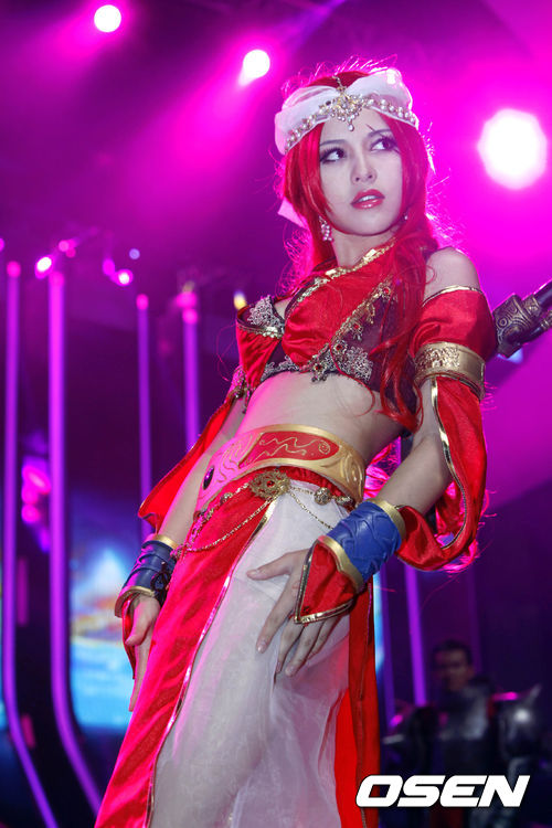 결승전이 벌어지기 전 벌어진 코스튬플레이에서 카탈리나가 공연을 펼치고 있다. /scrapper@osen.co.kr