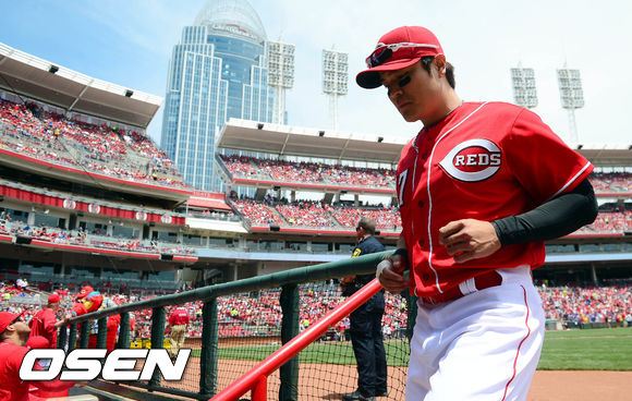 27일 새벽(이하 한국시간) 미국 오하이오주 신시내티 그레이트 아메리칸 볼파크에서 열린 신시내티 레즈와 시카고 컵스의 경기 시작 전 추신수가 경기 준비를 위해 덕아웃으로 향하고 있다.