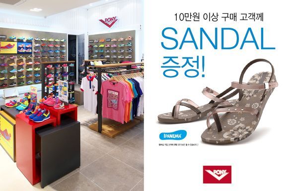 포니는 명동점 오픈을 기념해 고객 사은 이벤트를 진행한다. 포니는 27일부터 30여 개 직영매장에서 10만원 이상 제품을 구입한 이들(선착순 1800명)에게 남미 태생 여름신발 전문 브랜드 이파네마(IPANEMA)의 샌들을 증정한다. 또한 포니 매장에서 멤버십에 가입하는 고객에게 쇼퍼백을 증정한다.