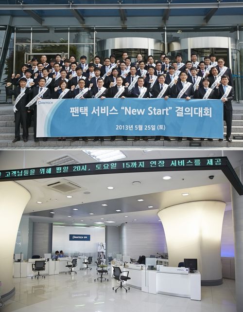 팬택은 뉴 스타트 결의대회에 앞서 지난 20일부로 전국 87개 서비스센터의 리뉴얼 작업을 완료했다. 리뉴얼을 통해 간판을 ‘팬택서비스’로 교체하고 내부 인테리어를 새 단장하는 등 소비자들에게 더욱 쾌적한 서비스를 제공하기 위한 준비를 마쳤다.