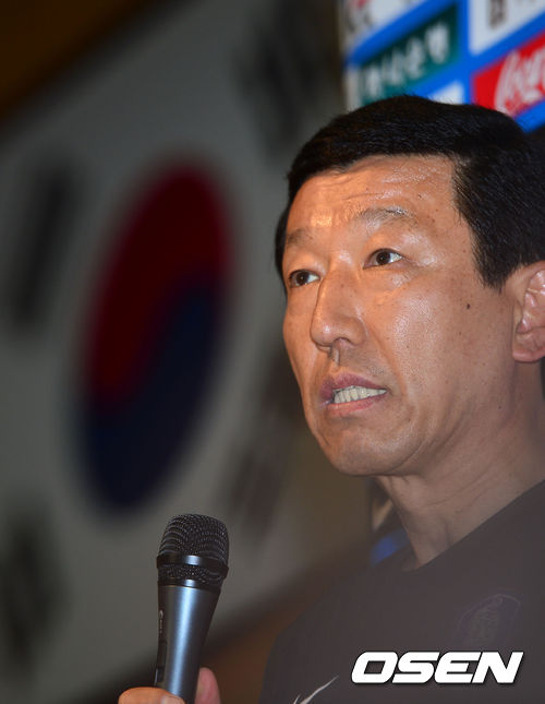 A대표팀 최강희 감독이 27일 오후 파주 NFC에서 공식 훈련 전 열린 기자회견에 참석해 취재진의 질문에 답하고 있다.
