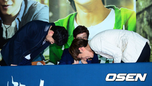 27일 오후 서울시 중구 동대문 메가박스에서 열린 영화 '은밀하게 위대하게(장철수 감독)' 언론배급시사회에서 박기웅이 다시 태어난다면 손현주 선배님으로 태어나고 싶다고 말하고 서로 감사의 인사를 하고 있다.