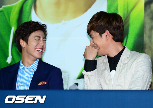 27일 오후 서울시 중구 동대문 메가박스에서 열린 영화 '은밀하게 위대하게(장철수 감독)' 언론배급시사회에서 이현우와 박기웅 기자회견을 하며 환하게 웃고 있다.