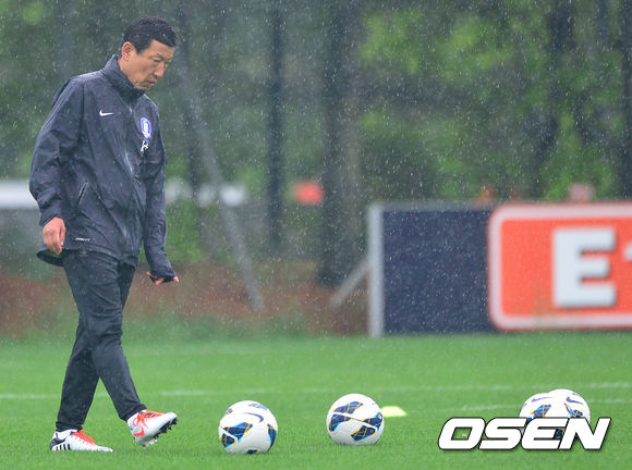 A대표팀의 최강희 감독이 27일 오후 파주 NFC에서 가진 공식 훈련에서 선수들의 훈련을 준비하고 있다.