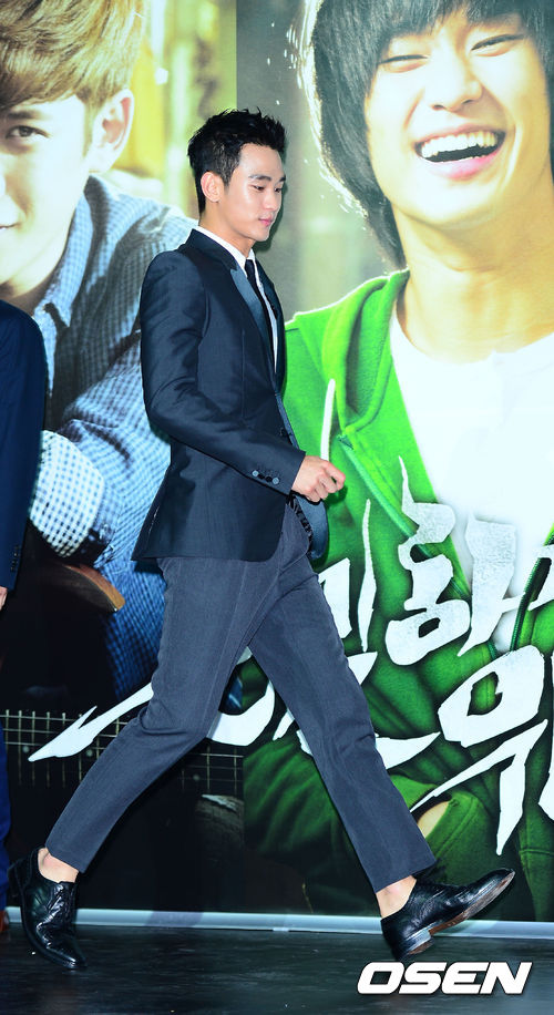 27일 오후 서울시 중구 동대문 메가박스에서 열린 영화 '은밀하게 위대하게(장철수 감독)' 언론배급시사회에서 김수현이 무대 앞으로 뛰어나오고 있다.