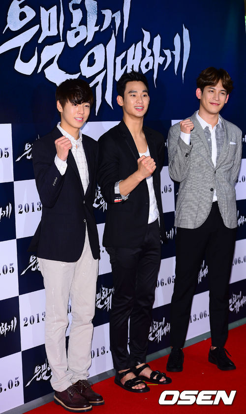 27일 저녁 서울 강남구 삼성동 코엑스 메가박스에서 열린 영화 '은밀하게 위대하게(장철수 감독)' VIP 시사회에서 이현우 김수현 박기웅이 포토타임을 갖고 있다.